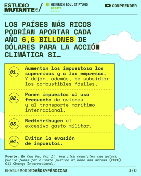 Una de las excusas más recurrentes de los países poderosos es que no tienen los recursos para asumir la reparación. Pero medidas concretas, como dejar de subsidiar los combustibles fósiles o reducir el gasto militar, podrían liberar billones de dólares cada año para atender a millones de personas afectadas por la crisis climática.