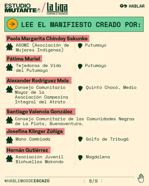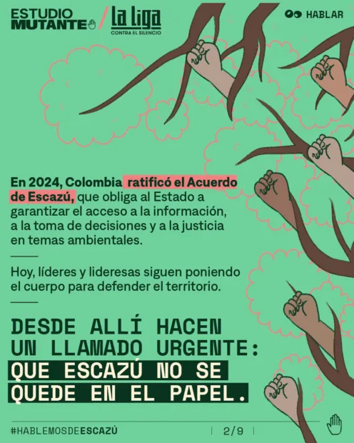 Aprovechando las conversaciones sobre cambio climático que se están teniendo en el marco de la COP30 que se realiza en Belem, Brasil, reunimos a seis líderes y lideresas ambientales, guardianes de ríos, montañas, manglares y selvas un un Círculo de la Palabra Mutante para conversar sobre el Acuerdo de Escazú.La principal herramienta de América Latina para garantizar información, participación y justicia ambiental, ya es ley en Colombia. Sin embargo, ¿de qué sirve un acuerdo para proteger a quienes cuidan la vida, si en los territorios nadie sabe que existe? Gracias a ese diálogo nació un manifiesto que propone: