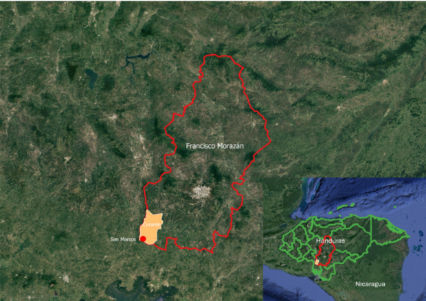 En la cima de una montaña, pasando el pequeño arroyo Maguala al suroccidente de Honduras, está el municipio de Curarén. El paisaje es montañoso, boscoso y seco: cuando llueve, verde y frondoso; cuando no, amarillo y árido. Hace parte del Corredor Seco Centroamericano, una región que Honduras comparte con los países de Guatemala, El Salvador, Nicaragua y una pequeñísima fracción de Costa Rica, definida por características climáticas y ecológicas comunes. En el mapa no aparece como un bloque uniforme, de fronteras claras y delimitadas, sino como manchas en la piel del continente.