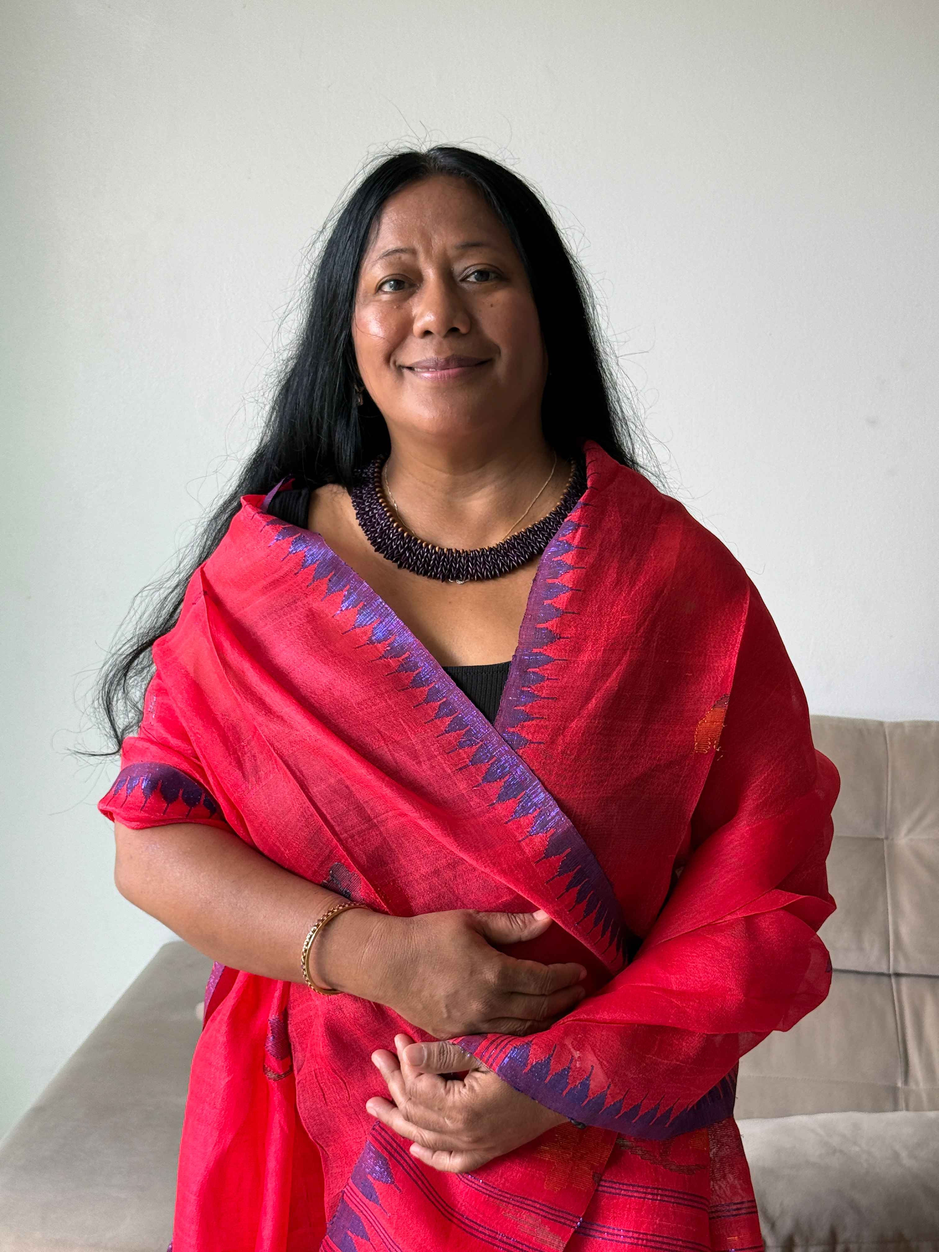 La conversación con Bina sucede a finales de noviembre, el último día de la 30 conferencia de las partes sobre el cambio climático (COP30), en Belém (Brasil), en la Amazonía, “el pulmón de la Tierra”, como ella la llama. Nadie la invitó, dice, pero llegó para impulsar elementos de paz, mujeres y clima en el texto final. A traer “las almas del mundo indígena constructor de paz que faltan en la COP30”, a hablar de “la sanación de las personas, la paz y el planeta”. El aire a nuestro alrededor se pone denso y hacemos pausas para limpiarnos el sudor de la cara, por más que el ventilador de la sala donde conversamos hace su mayor esfuerzo por mantenernos frescas en ese clima húmedo tropical.