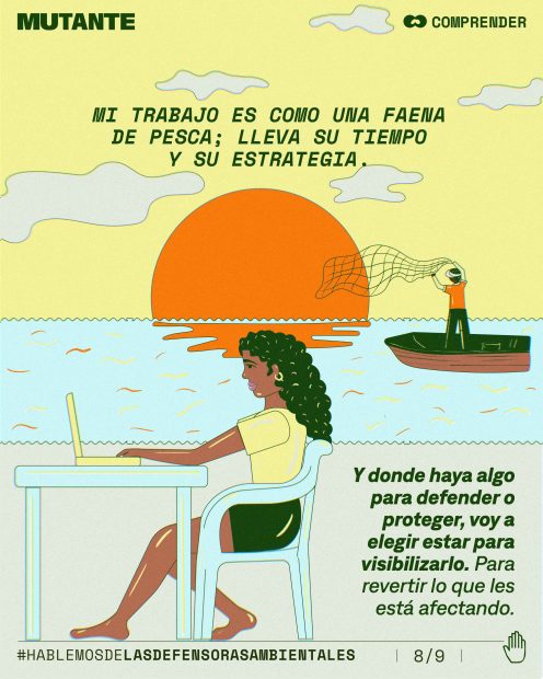 Ethel ha acompañado a pescadores, protegido árboles y narrado lo que ocurre cuando el territorio está en riesgo. Para ella, el periodismo es como una faena de pesca: requiere tiempo, estrategia y presencia.