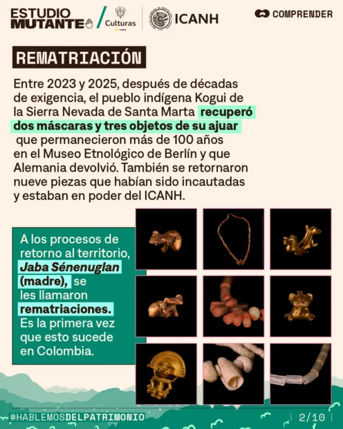 Entre 2023 y 2025, tras décadas de exigencias, el pueblo Kogui de la Sierra Nevada recuperó 5 piezas sagradas que permanecieron más de 100 años en el Museo Etnológico de Berlín.