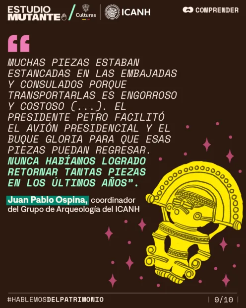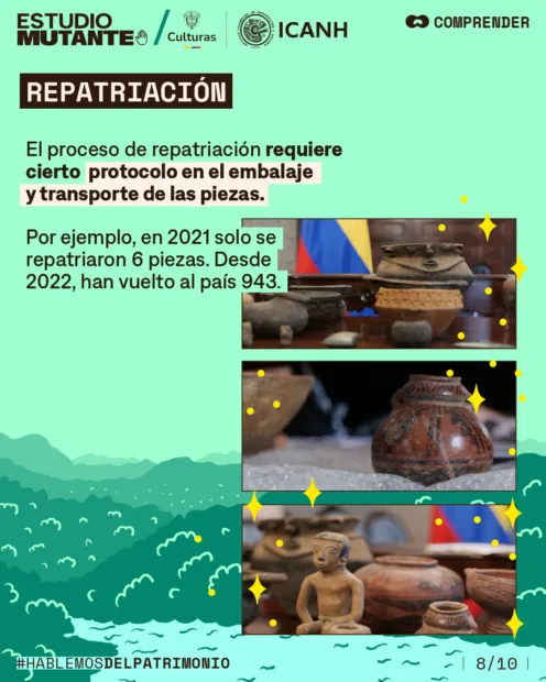 Por su parte, en un proceso que se conoce como REPATRIACIÓN, 930 piezas arqueológicas han retornado a Colombia en los últimos cuatro años.