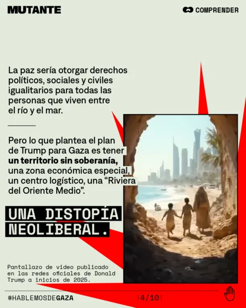 🕊️⚠️ Mientras se proclama “el fin de la guerra en Gaza”, el nuevo plan de paz impulsado por Trump plantea un futuro sin soberanía para Palestina: una zona económica especial, una "Riviera del Oriente Medio", una distopía neoliberal.