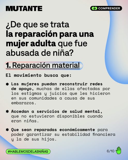 Te invitamos a descargar y compartir esta información para que más mujeres heridas puedan saber que hay un camino de reparación posible. Y para que como sociedad acojamos estos pasos para atender esas mujeres, ayer niñas, que abandonamos.