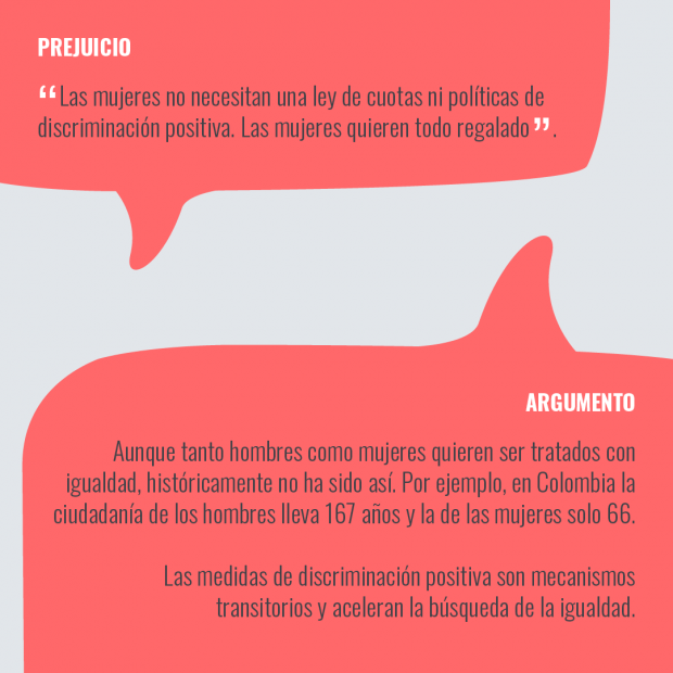 Uno de los obstáculos más fuertes para la participación de mujeres en la política en Colombia han sido los prejuicios que recaen sobre ellas por ser mujeres. Adriana Peña, de la Misión de Observación Electoral y Beatriz Quintero, de la Red Nacional de Mujeres, desmitifican estos prejuicios con argumentos en esta guía.